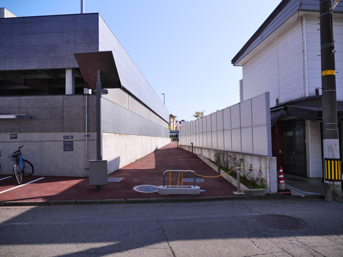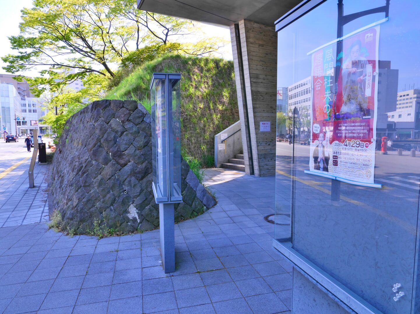 冬期間を中心に閉鎖していたあきた芸術劇場ミルハスわきの遊歩道が先週、開放されました。ミルハス正面に向かって建物の左わきから階段を上りながらケヤキの枝の下を通り、ミルハス裏の駐車場近くで階段を下り、大イチョウを右へ折れてミルハス駐車場とお堀の間を歩くと佐竹小路に出られる延長約250メートルのルートです。もちろん佐竹小路側から逆向きにも歩けます。