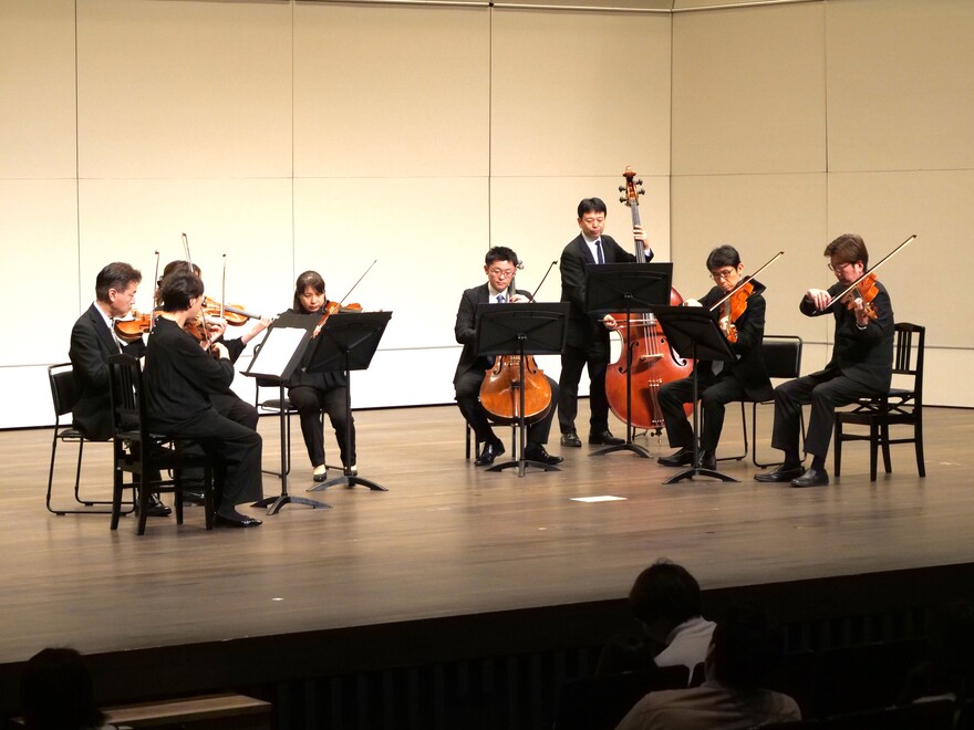 0歳から観覧できる演奏会「山形交響楽団✕ミルハス 親子クラシック」が15日、あきた芸術劇場ミルハス中ホールで開催されました。親子連れら約470人が来場し、山形交響楽団による弦楽八重奏を楽しみました。