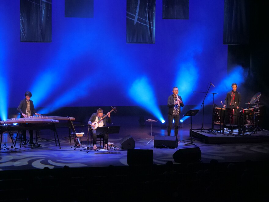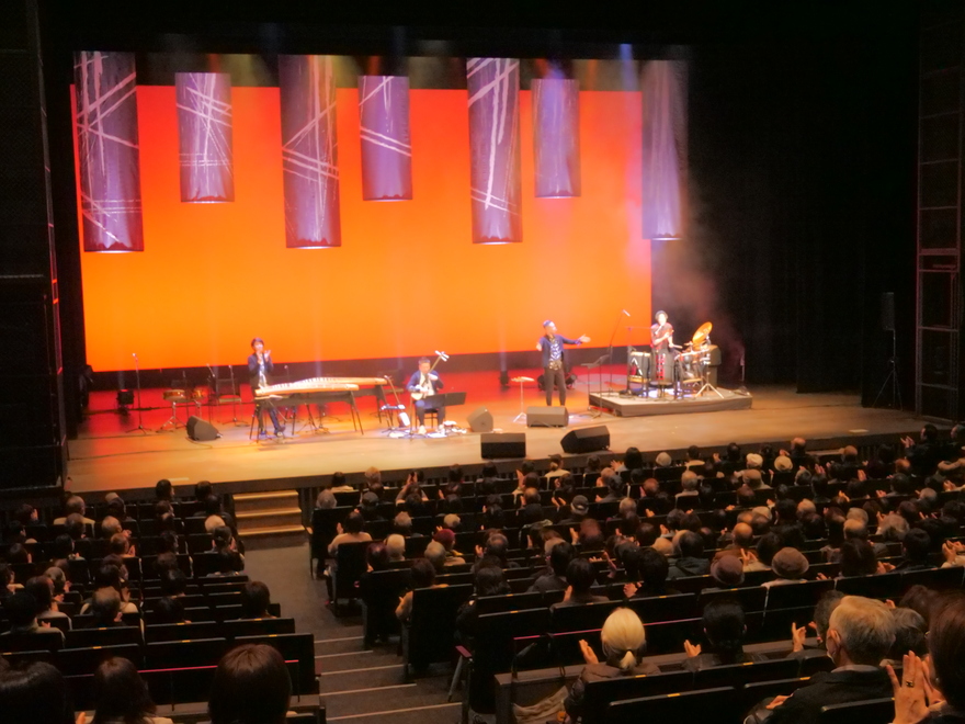 第2部に登場した「WASABI」は津軽三味線、尺八、筝、太鼓の4人で構成。疾走感あふれるナンバー「烈光」や、流れるような曲調の「アガイティーラ」などオリジナルの7曲を演奏しました。和楽器の伝統的なフレーズを生かしつつ、現代的な感性が光るメロディーが観客を魅了。富山県民謡「こきりこ節」をアレンジしたアップテンポな楽曲「KOKIRIKO」も会場を沸かせ、観客はリズムに合わせて手をたたいたり体を揺らしたりして楽しんでいました。