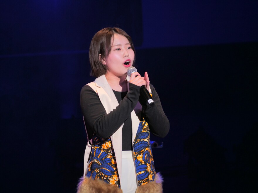 WASABIの津軽三味線奏者・吉田良一郎さんがプロデュースした若手民謡ユニット「みんよぅユリism」から、川井ふたばさん(秋田市)と荒瑞加さん(仙台市)も出演。2人とも着物ではなく洋服で登場し、伴奏を洋楽器でアレンジした「秋田音頭」と「大漁唄い込み」をそれぞれ歌い上げました。